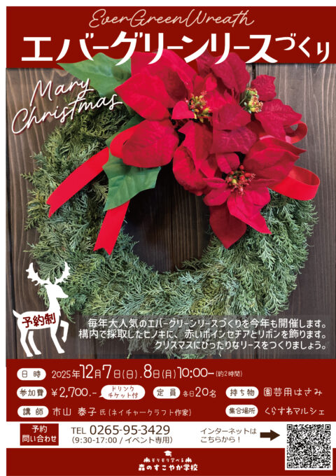 毎年大人気のエバーグリーンリースづくりを今年も開催します。