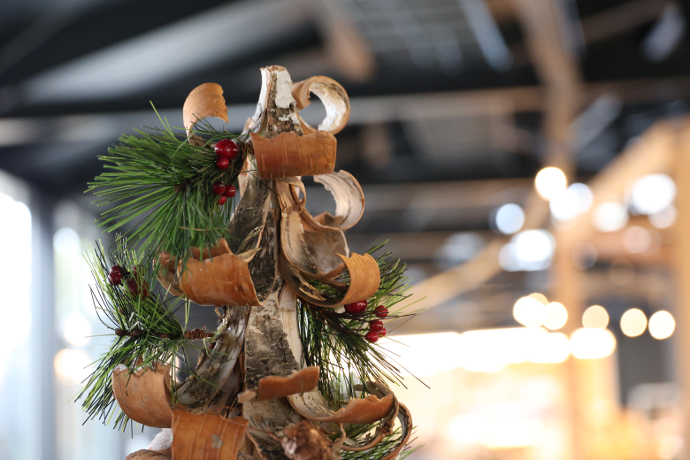 さらに、白樺の樹皮を使ったオリジナルツリーも登場。自然の素材を活かしたデザインで、くるんと反り返った樹皮がもみの木のように広がり、ちょっとユニークでかわいらしい仕上がりになっています。